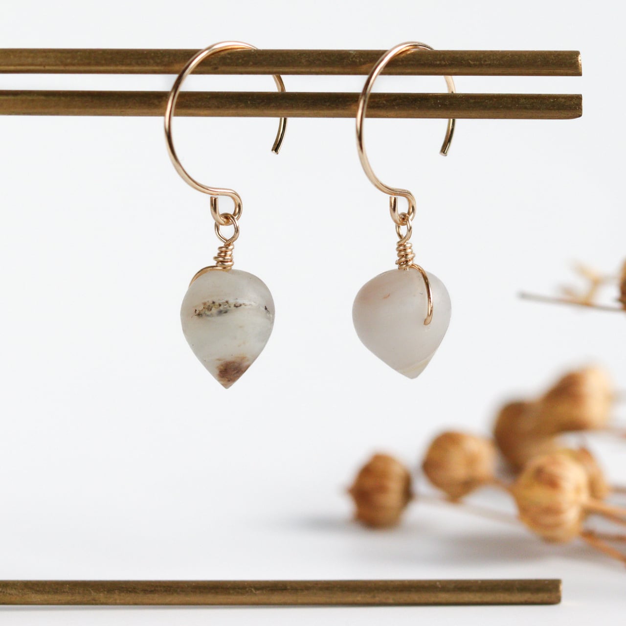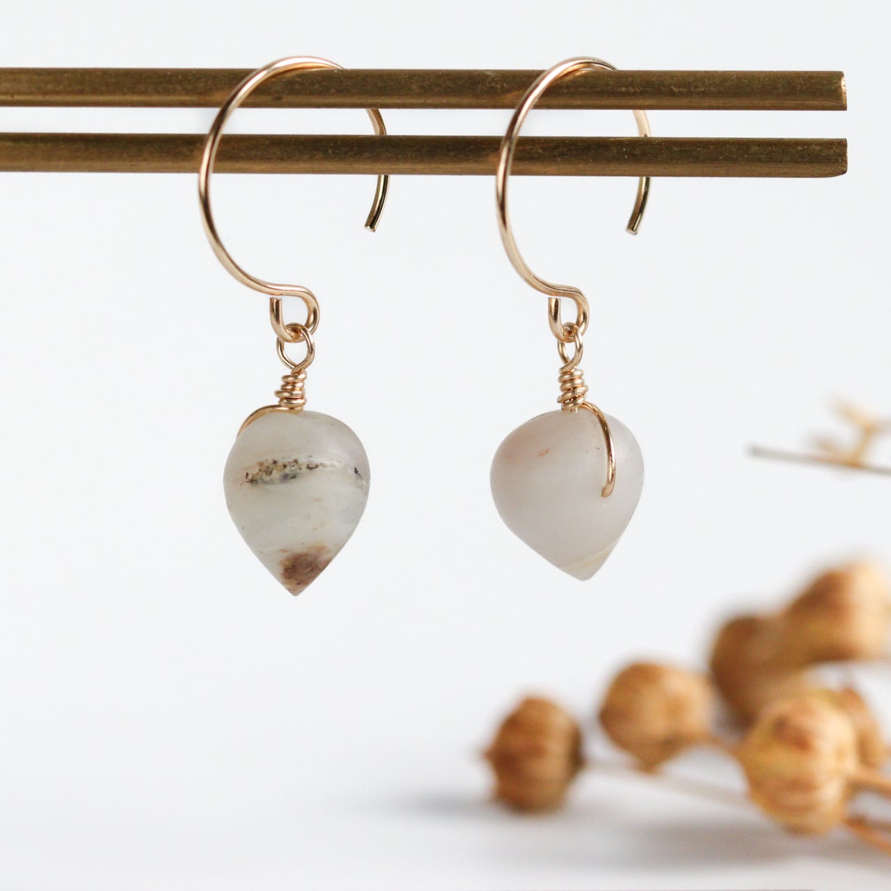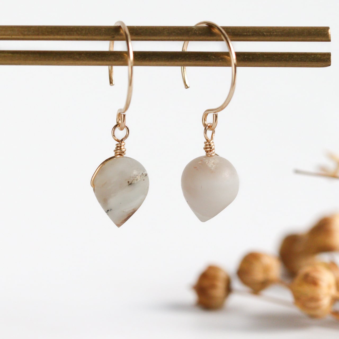 ・硬いものにぶつけたり強い力が加わると石が欠けたり金具部分が破損してしまう可能性がございますので、やさしくお取り扱いいただきますようお願いいたします。