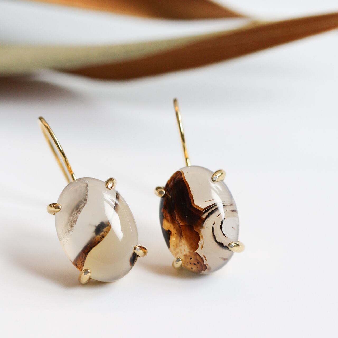 一つ一つの模様が喩えようもないほど個性的。アートを内包したかのような表情が魅力の、モンタナモスアゲートのピアスです。