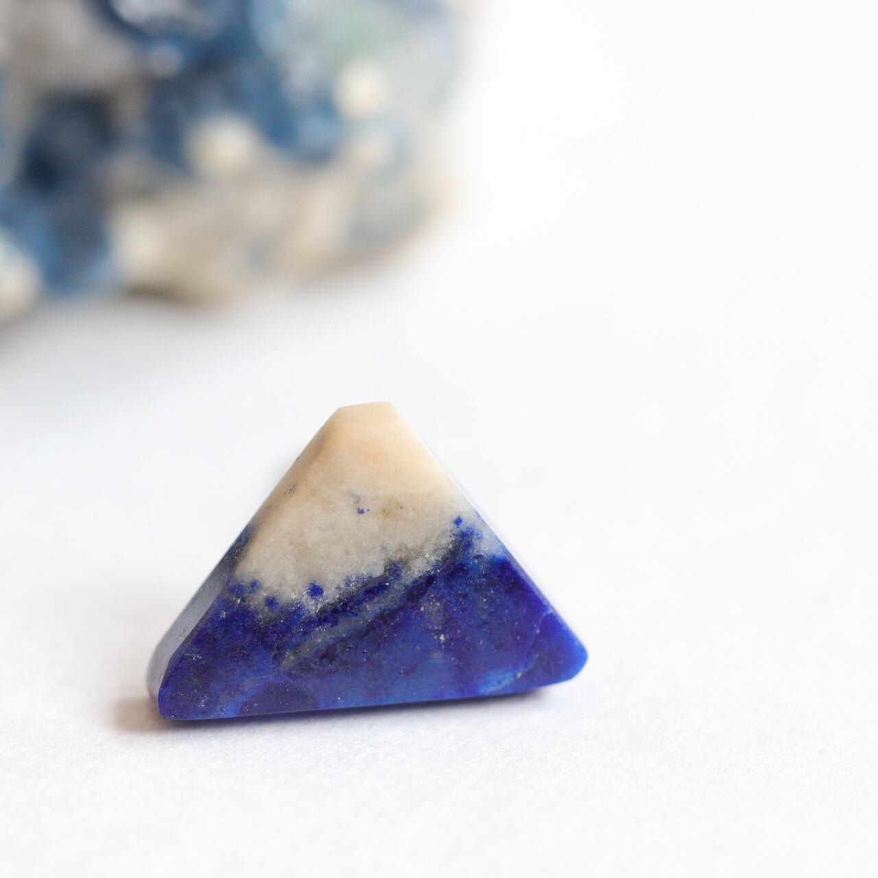 ラピスラズリらしい青と白の模様を生かしてカットし、磨き上げた、小さな小さな富士山。