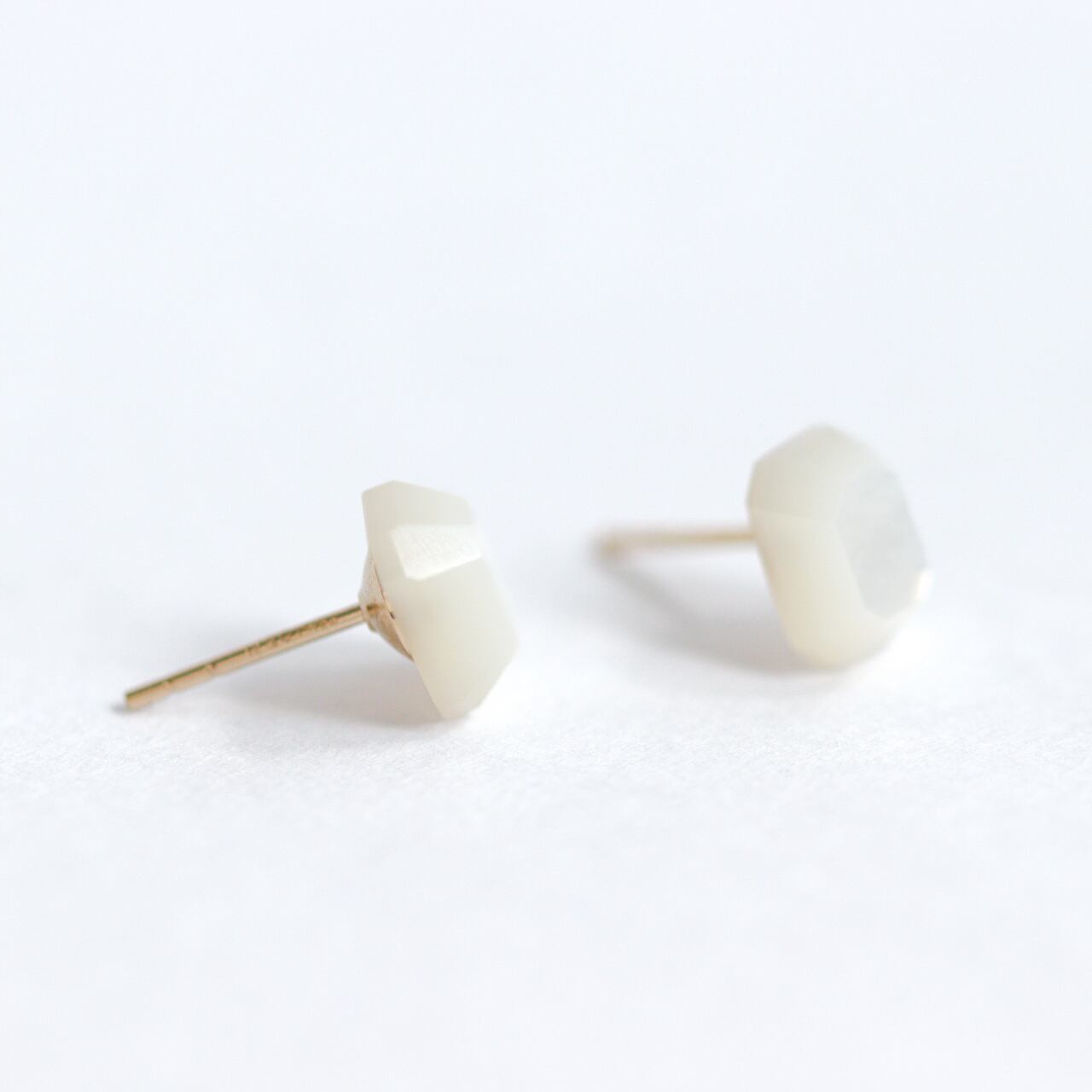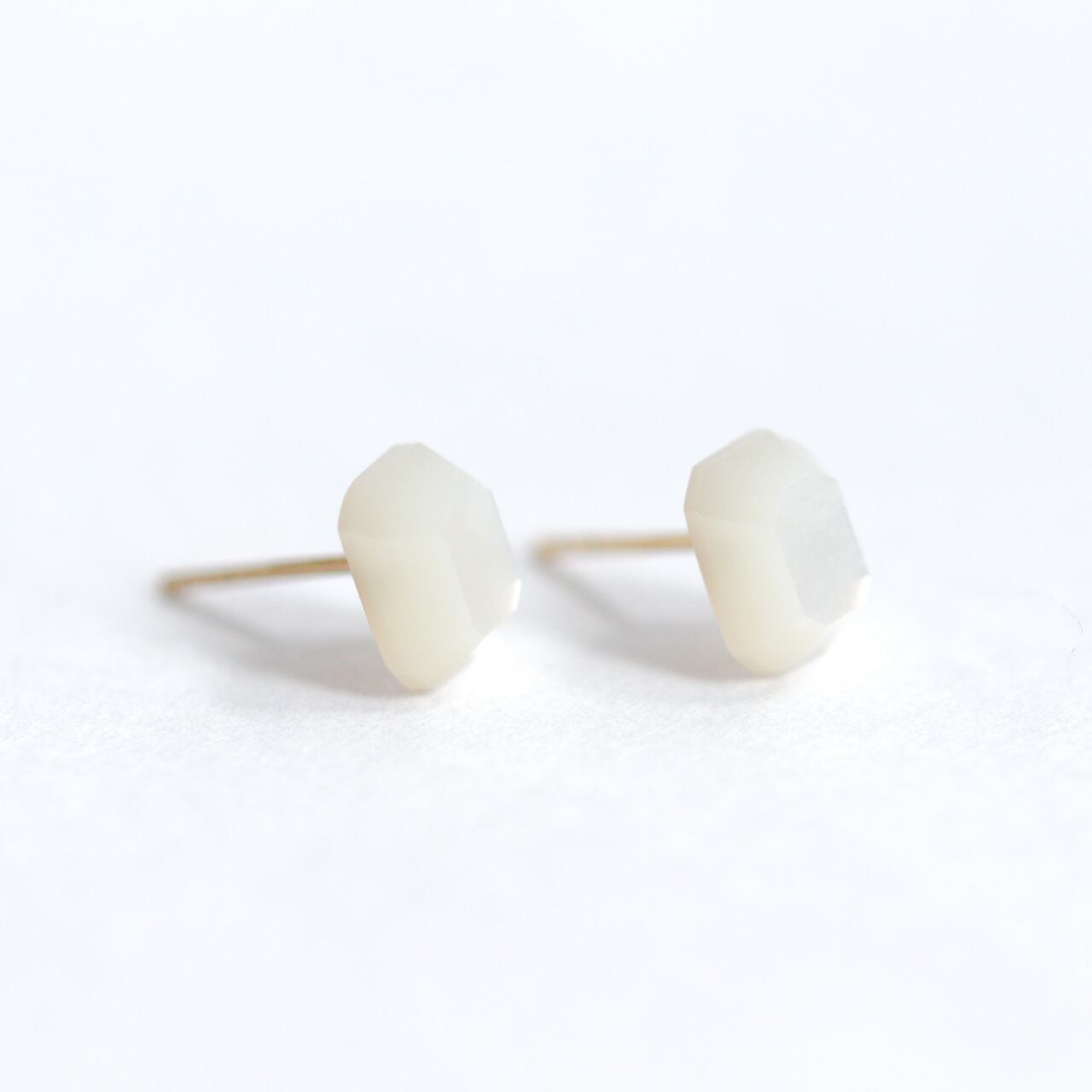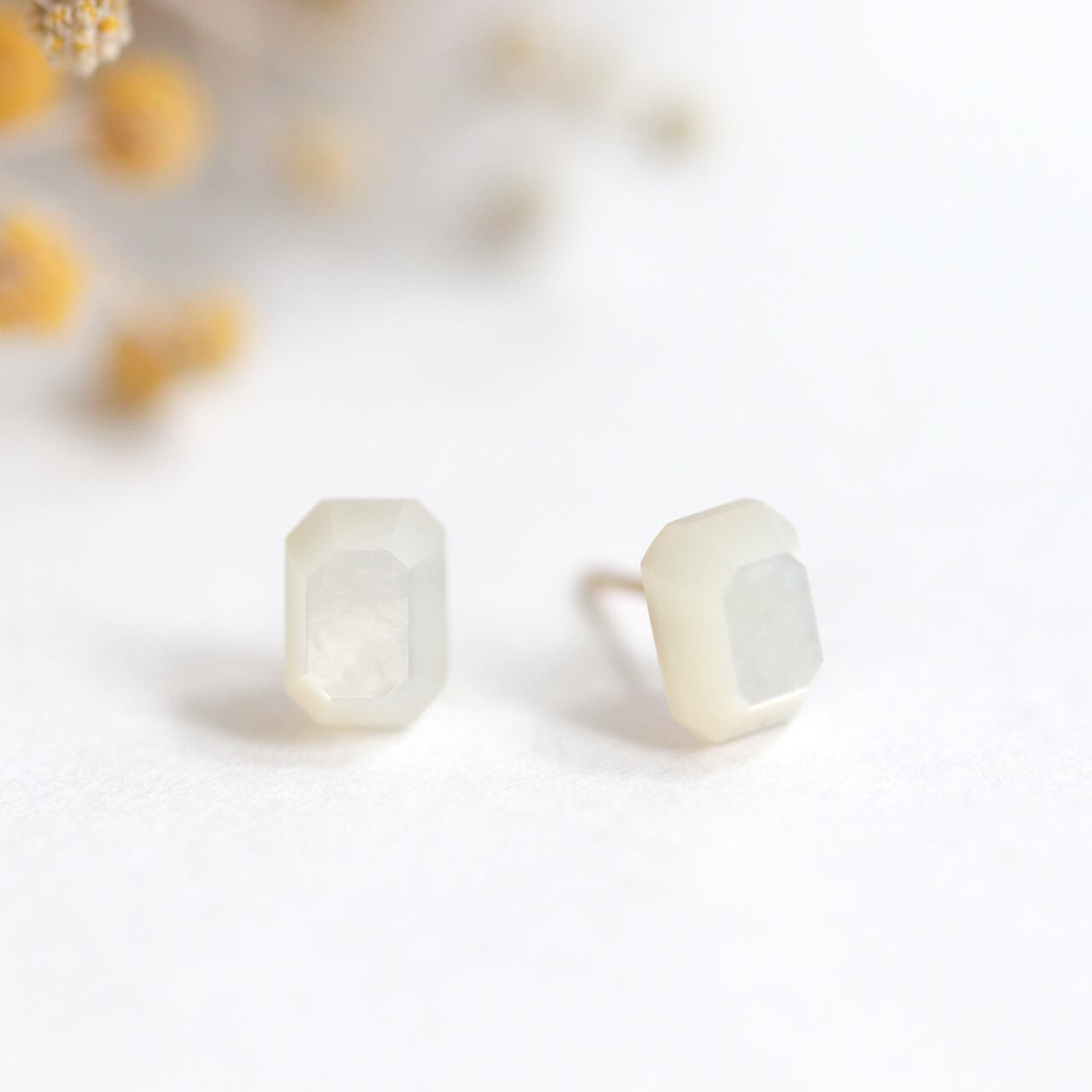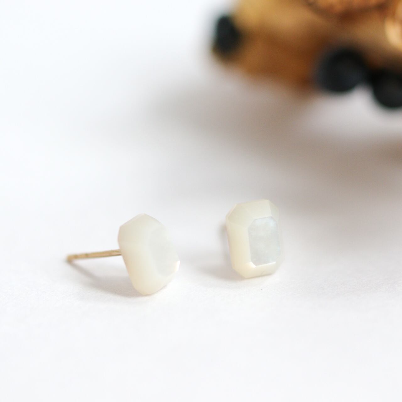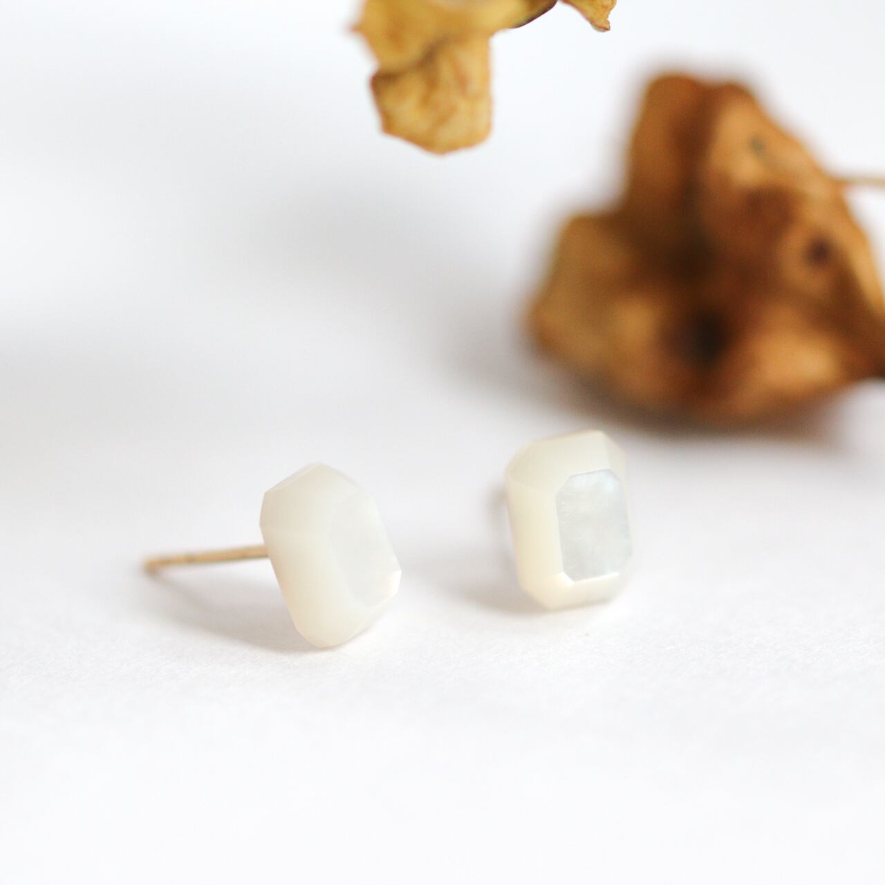 幅広くお使いいただけることを意識して仕立てたマザーオブパール(白蝶貝)のミニピアスです。