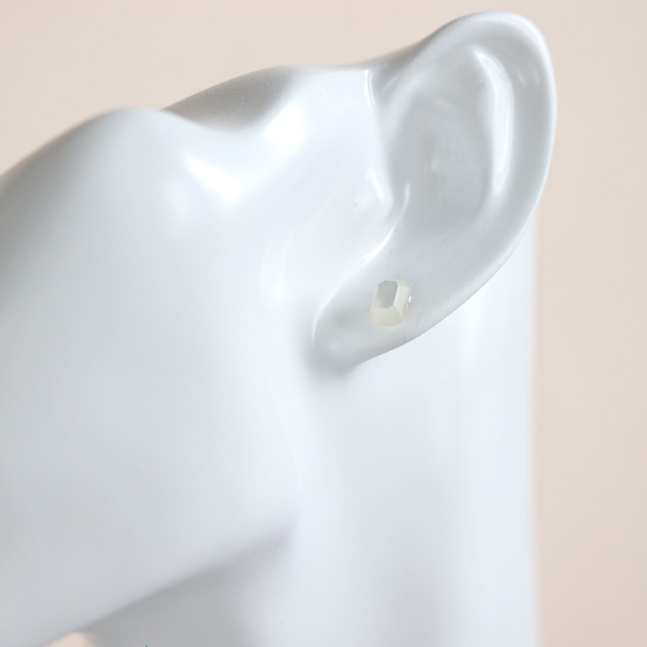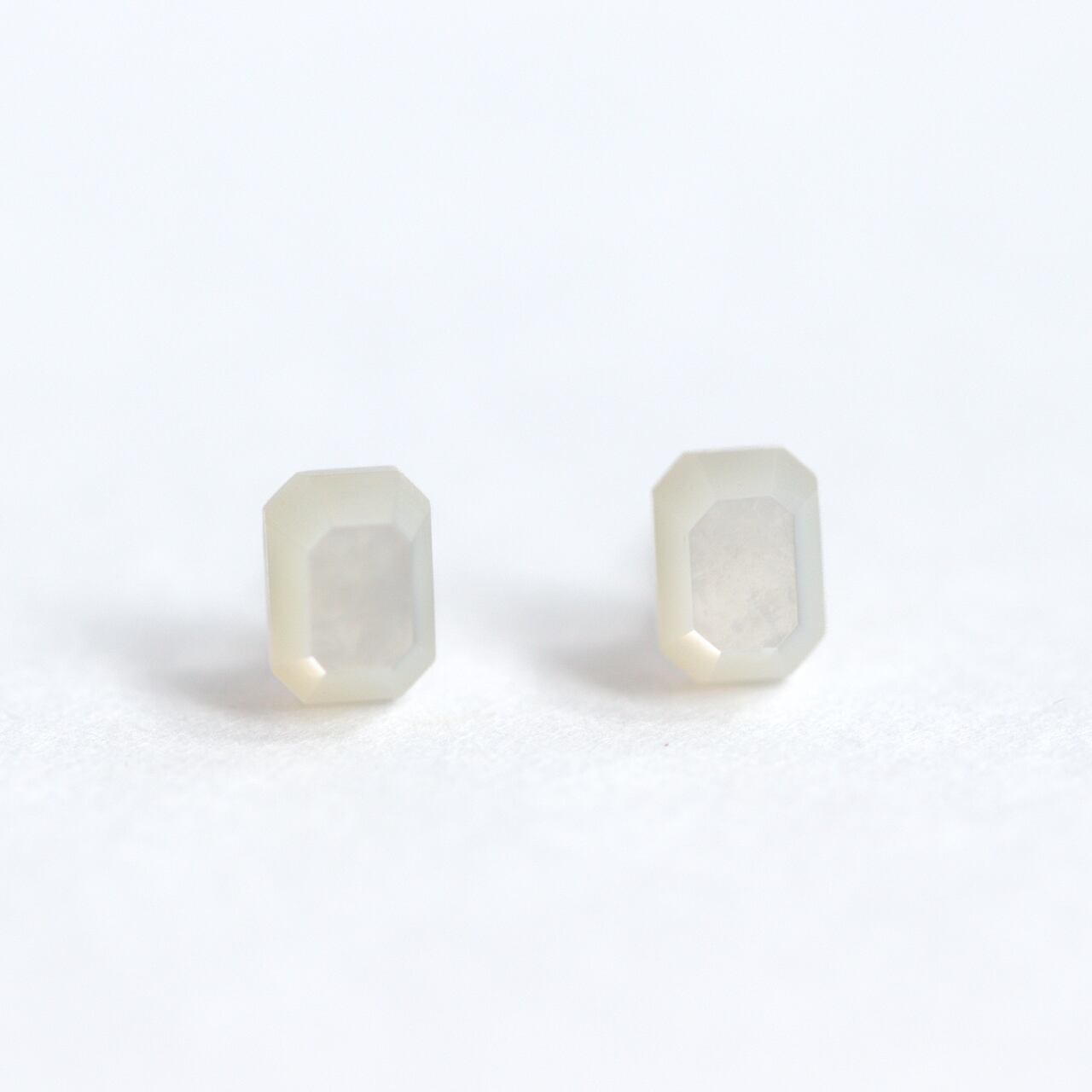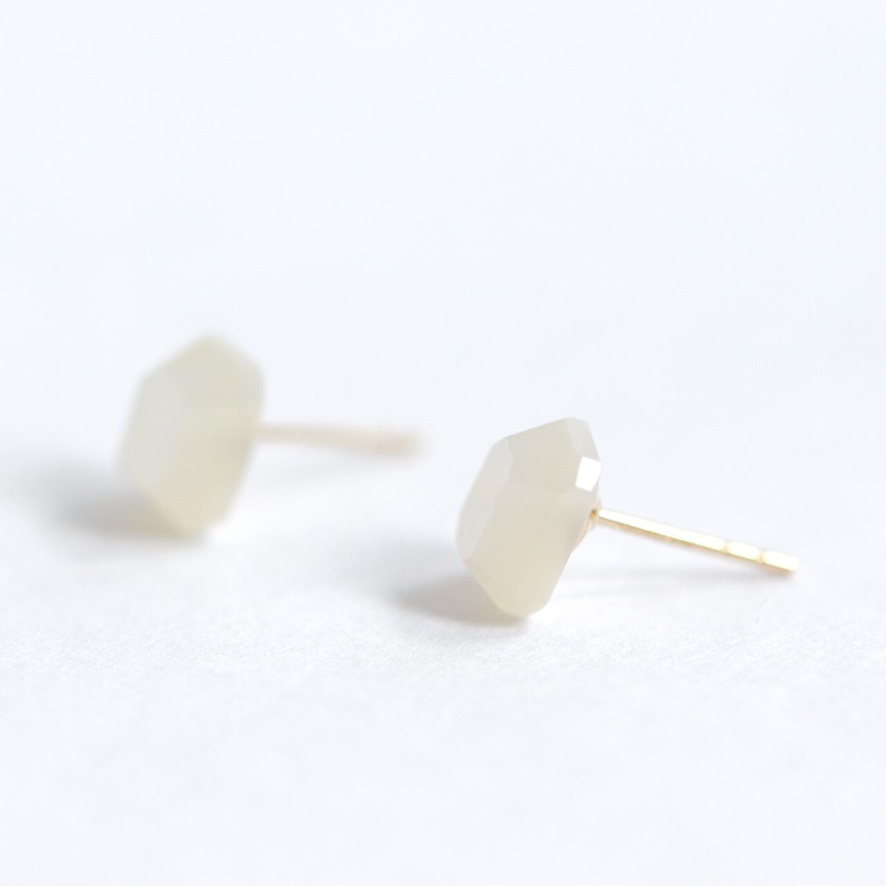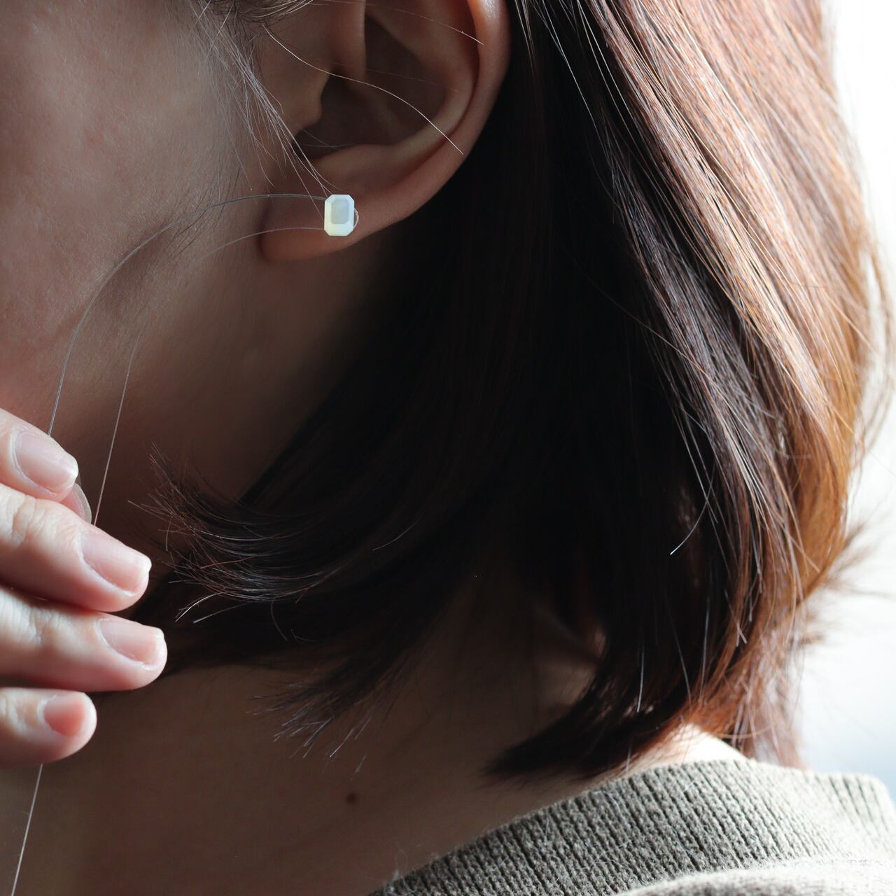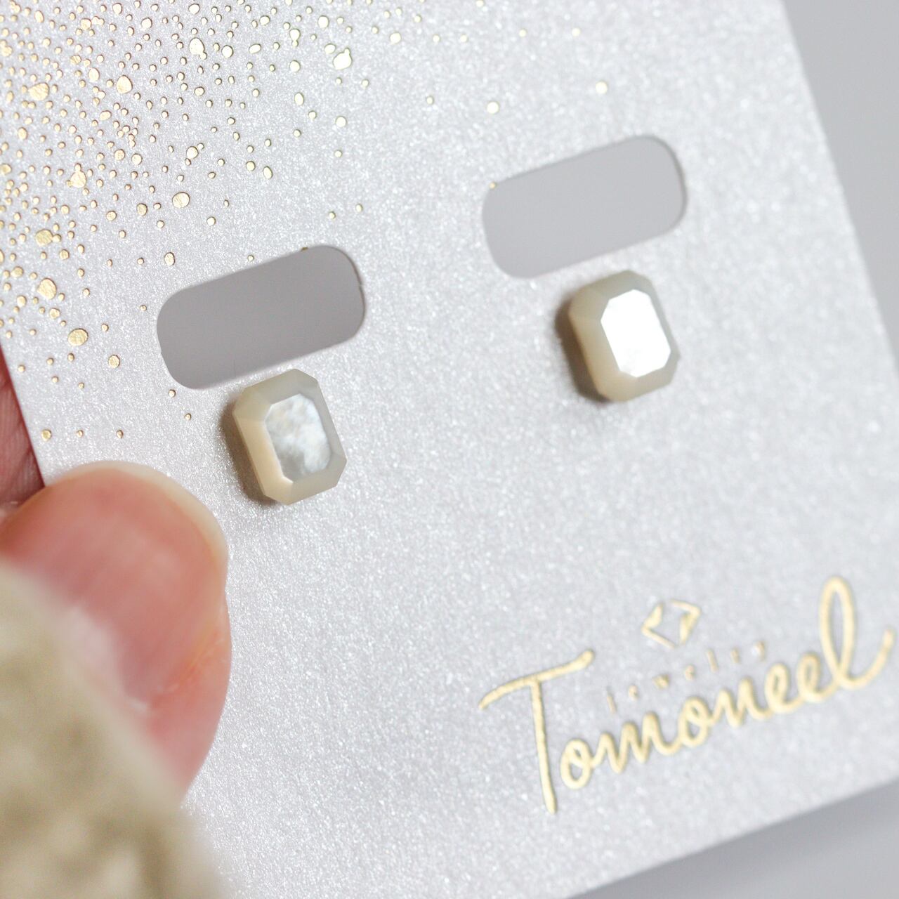 幅広くお使いいただけることを意識して仕立てたマザーオブパール(白蝶貝)のミニピアスです。