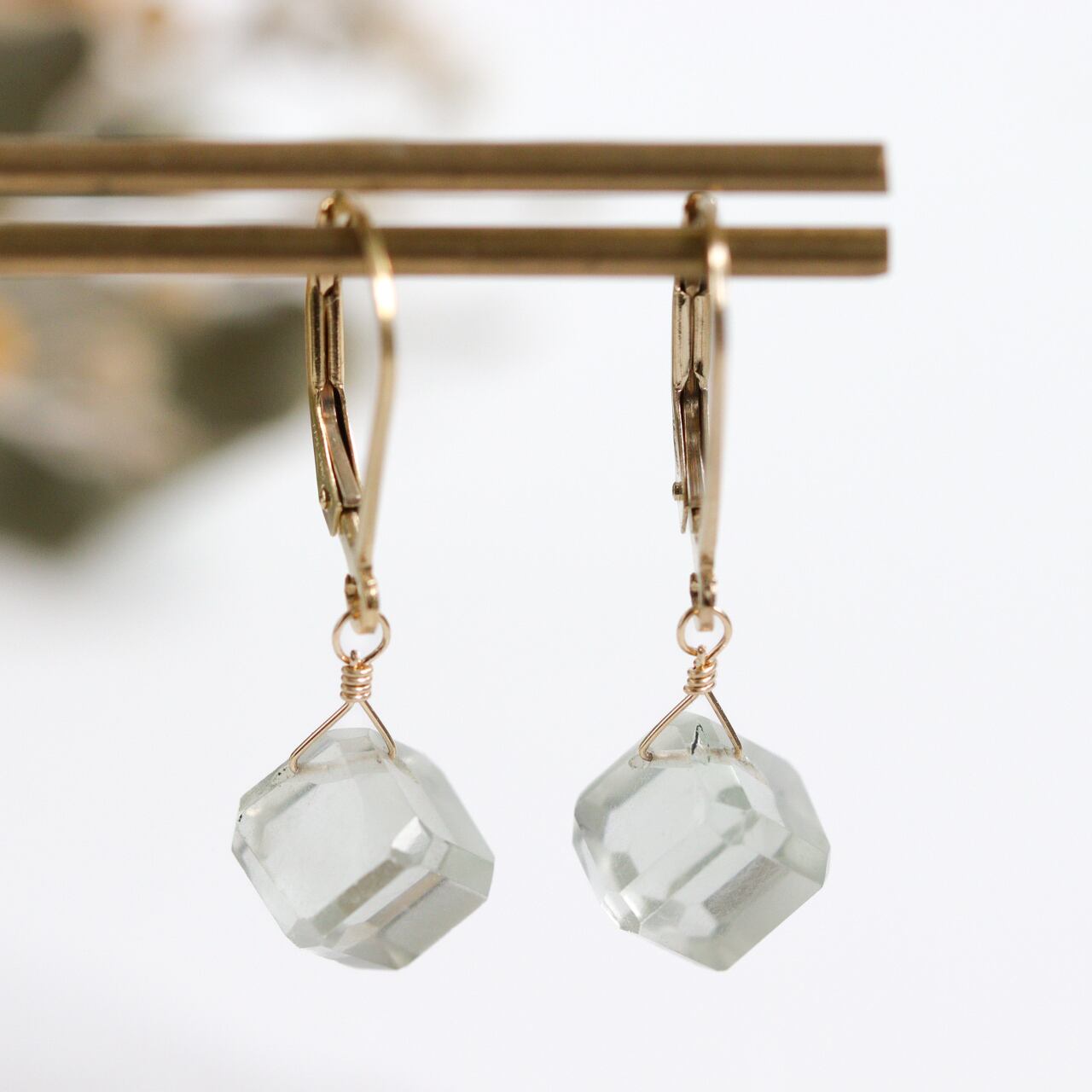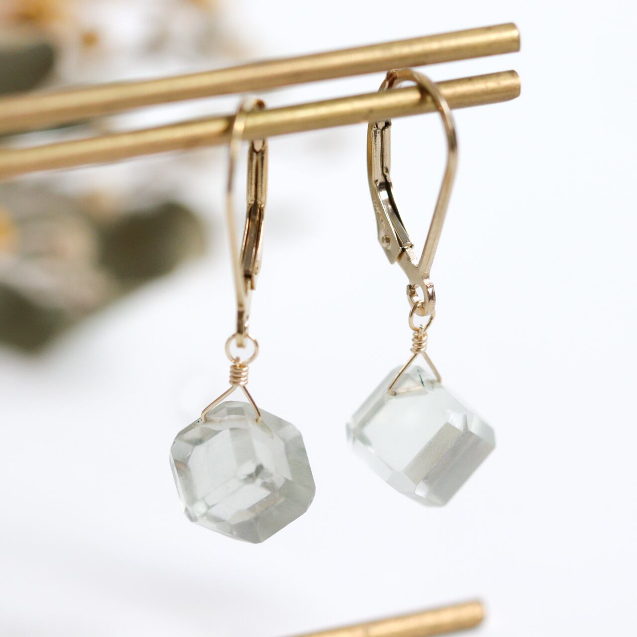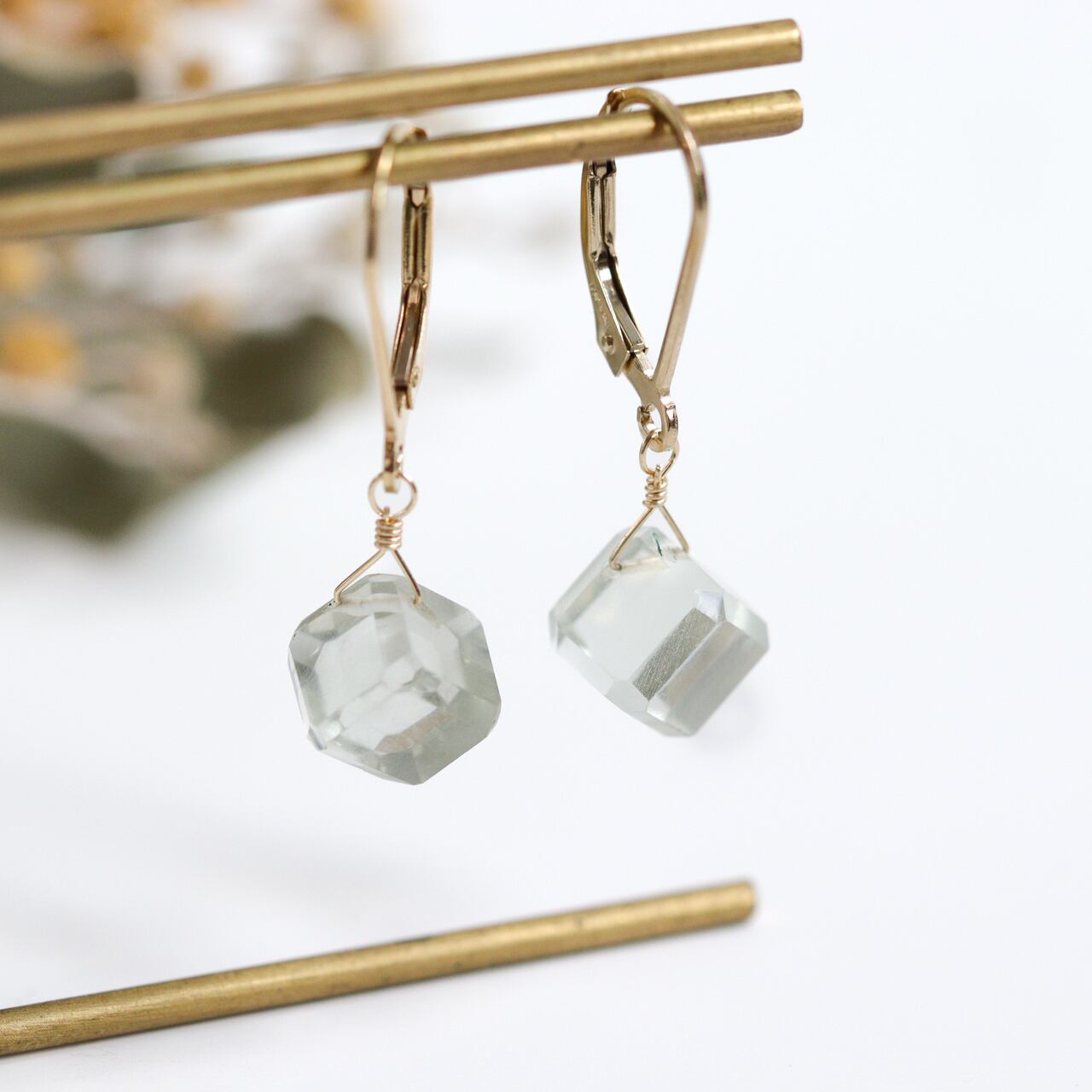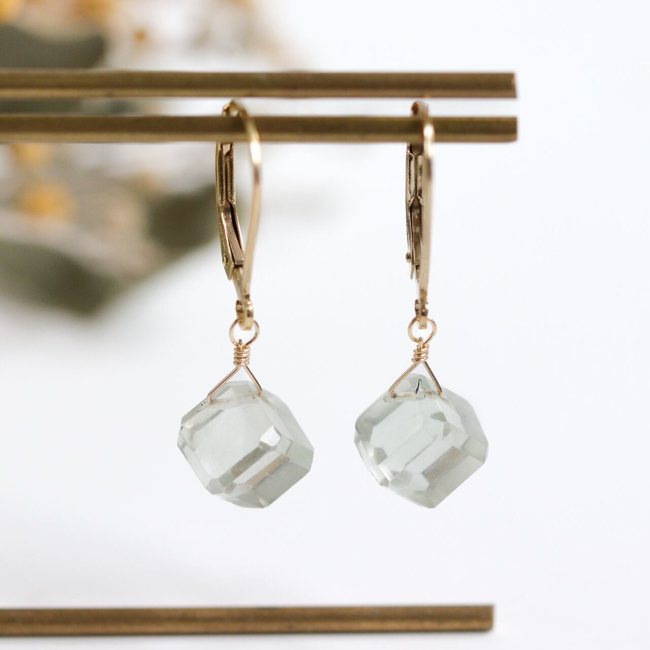 透明感のあるグリーンアメジストのピアスです。