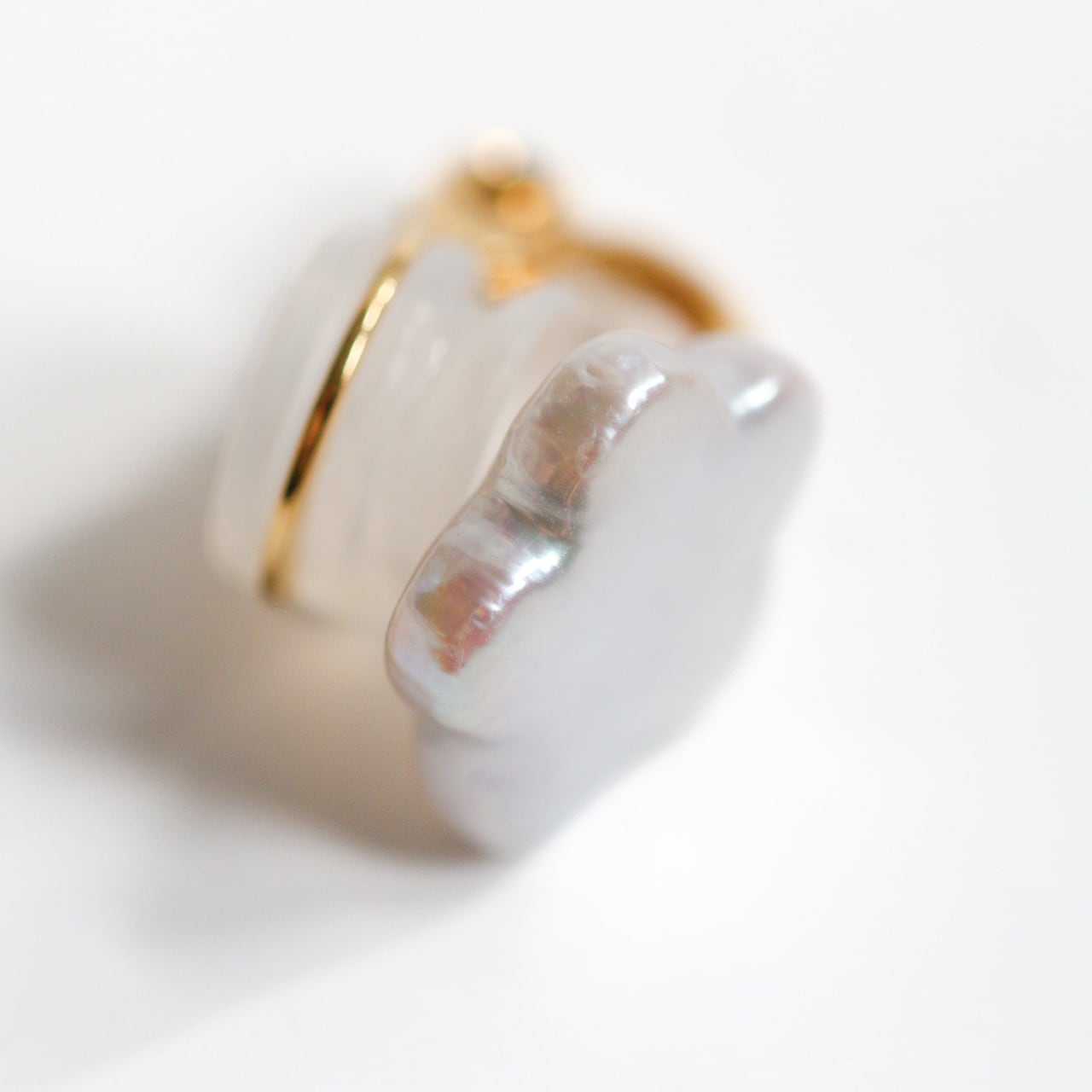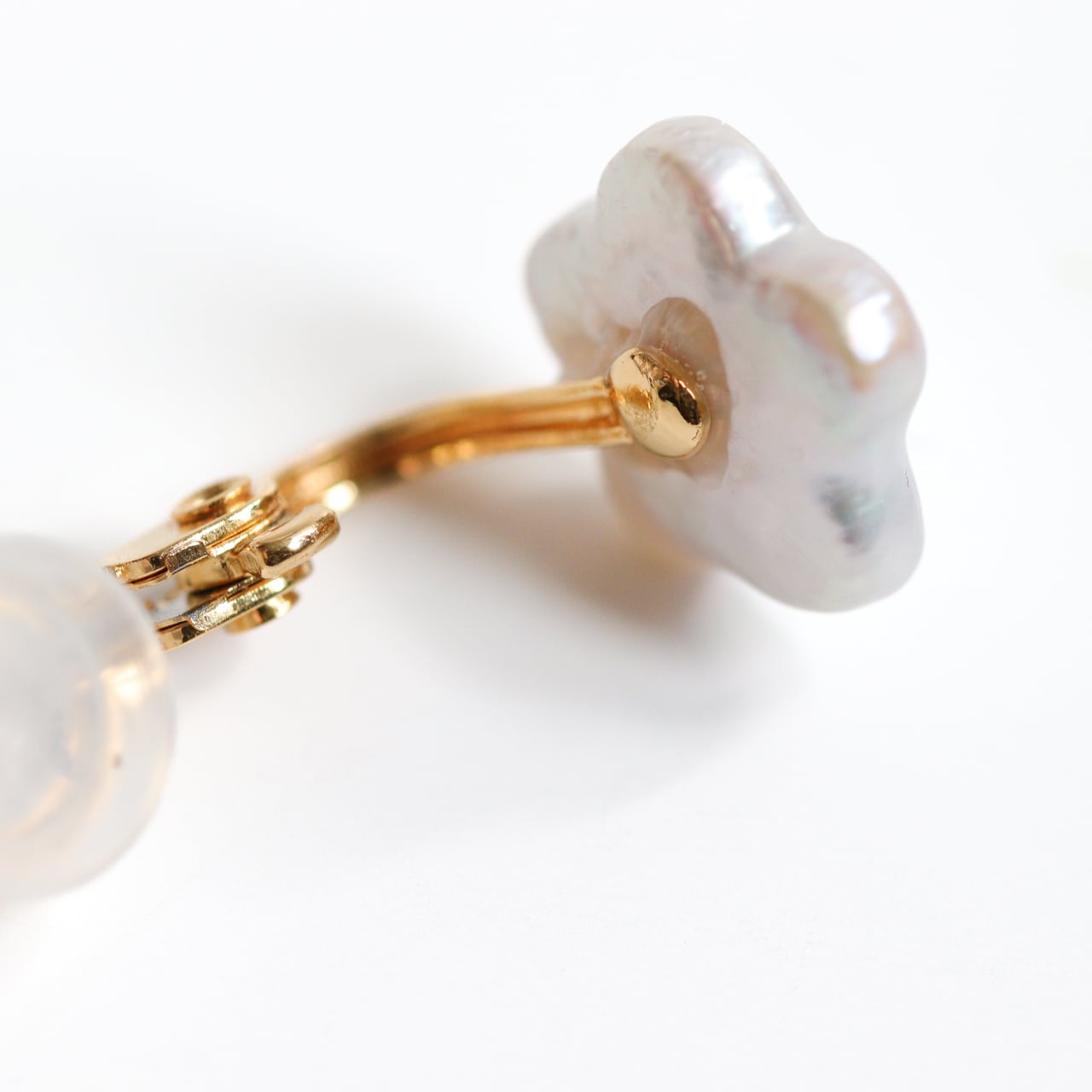 見る角度によって静かな光沢が浮かぶ淡水パールをイヤリングに仕立てました。