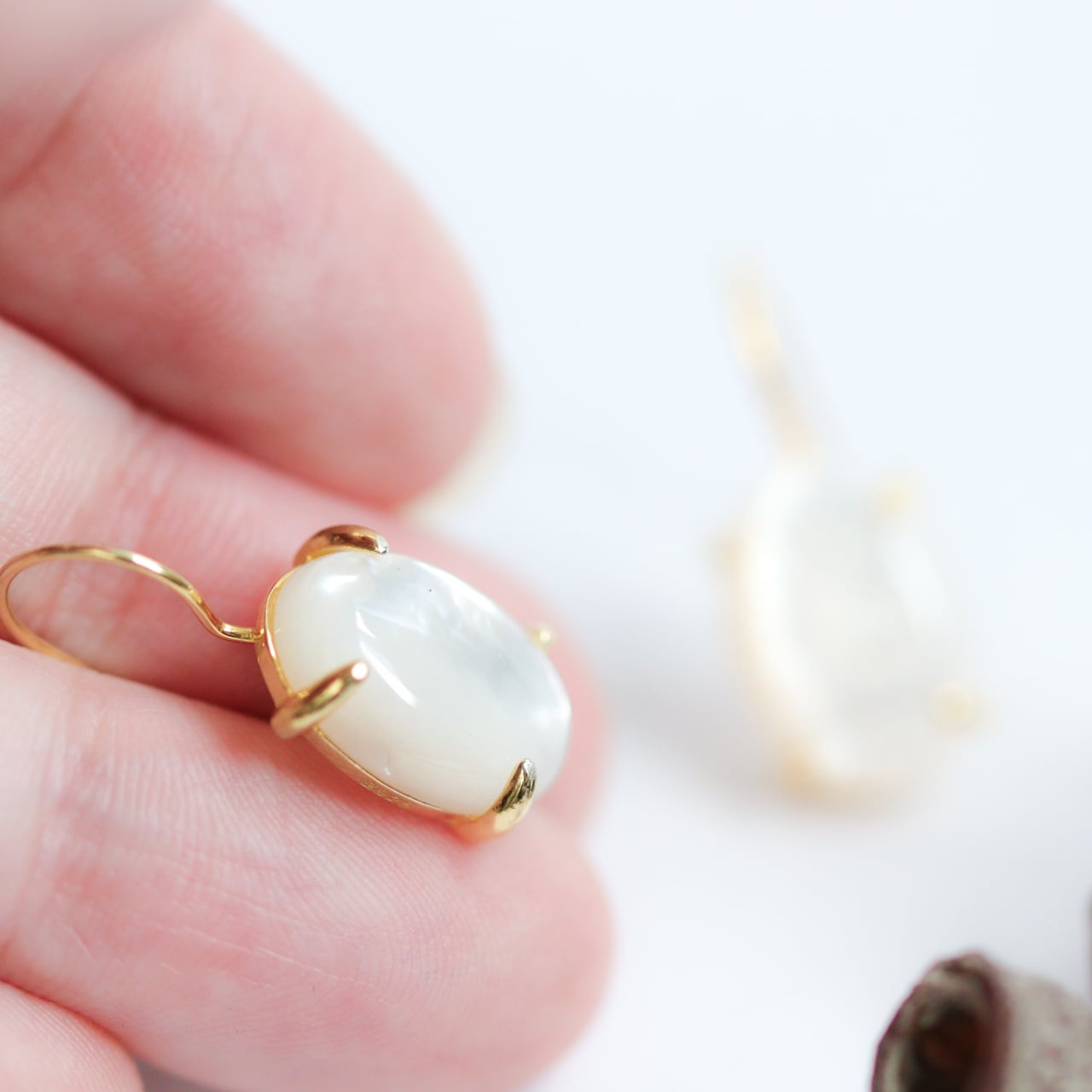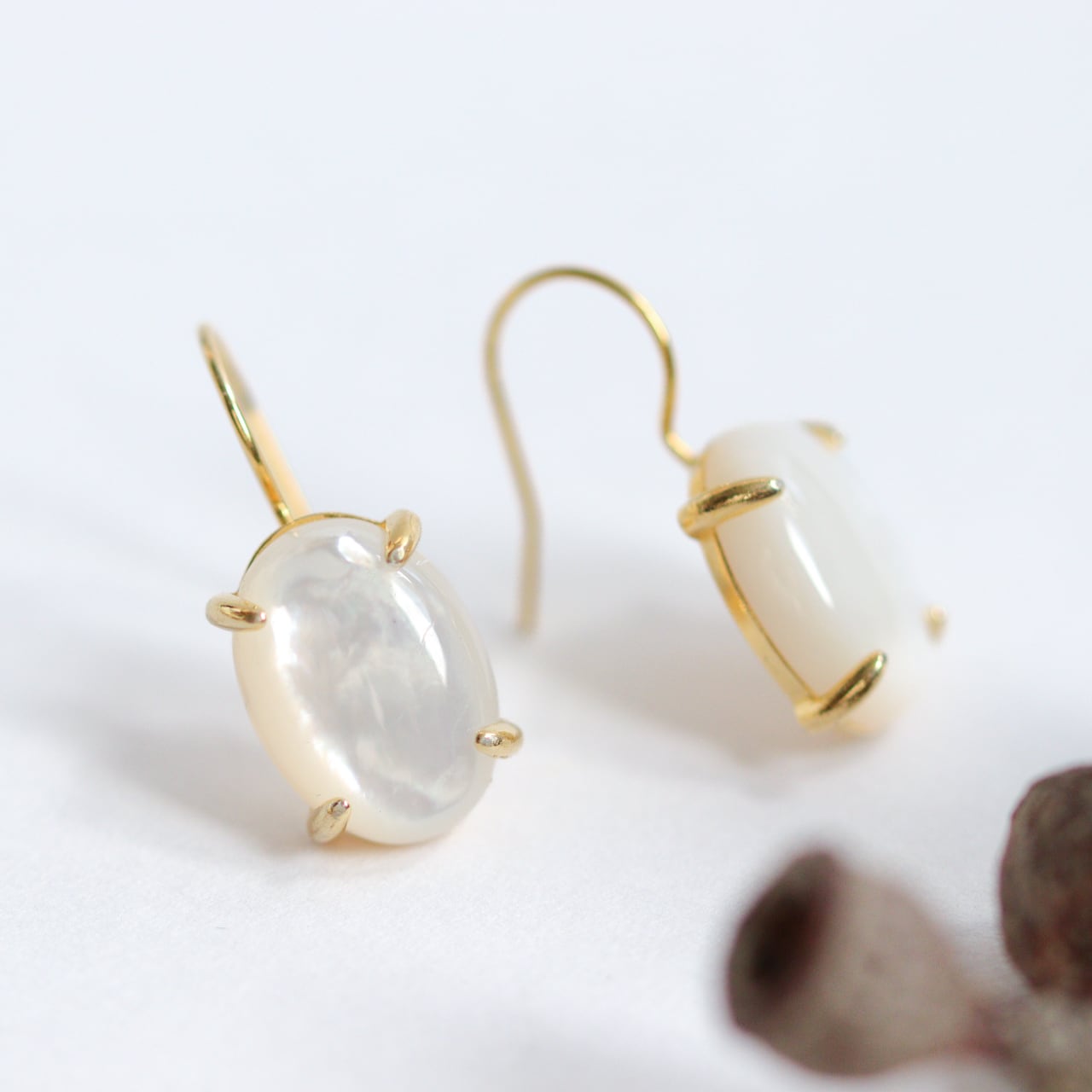 マザーオブパール(白蝶貝)を、シンプルで上品なピアスに仕立てました。