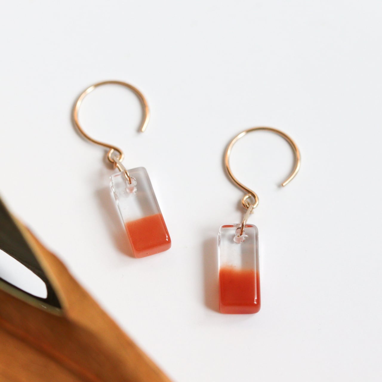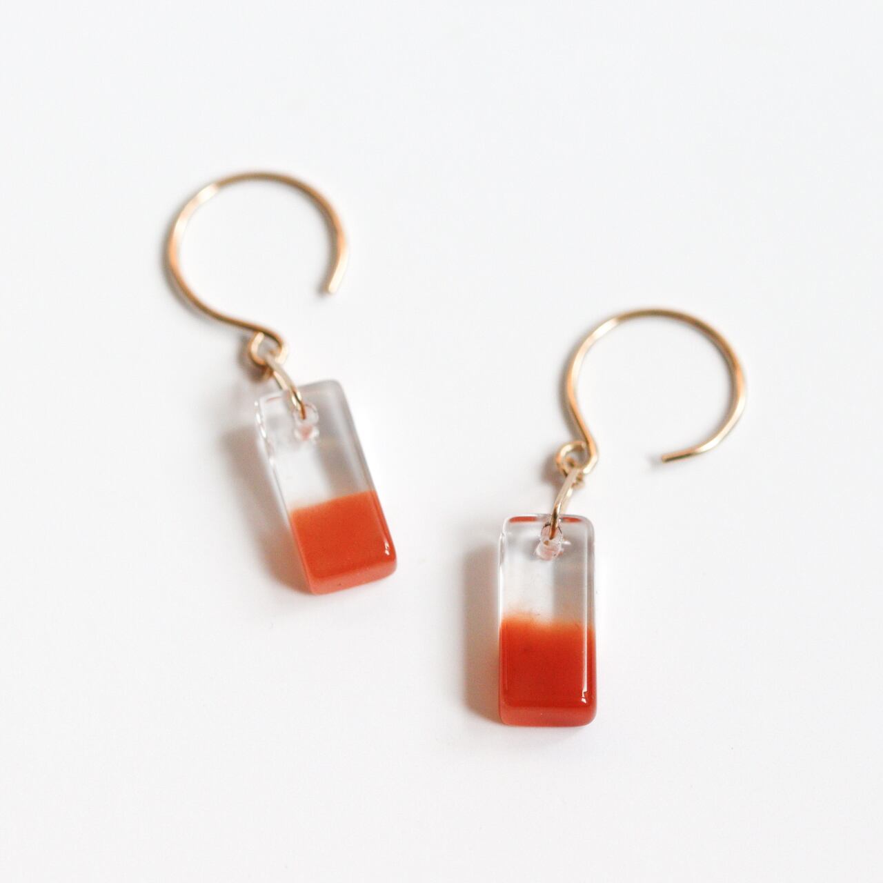 向こう側が見えるほど透き通った水晶に、南国の果実を思わせるテラコッタオレンジがふわりと浮かび、