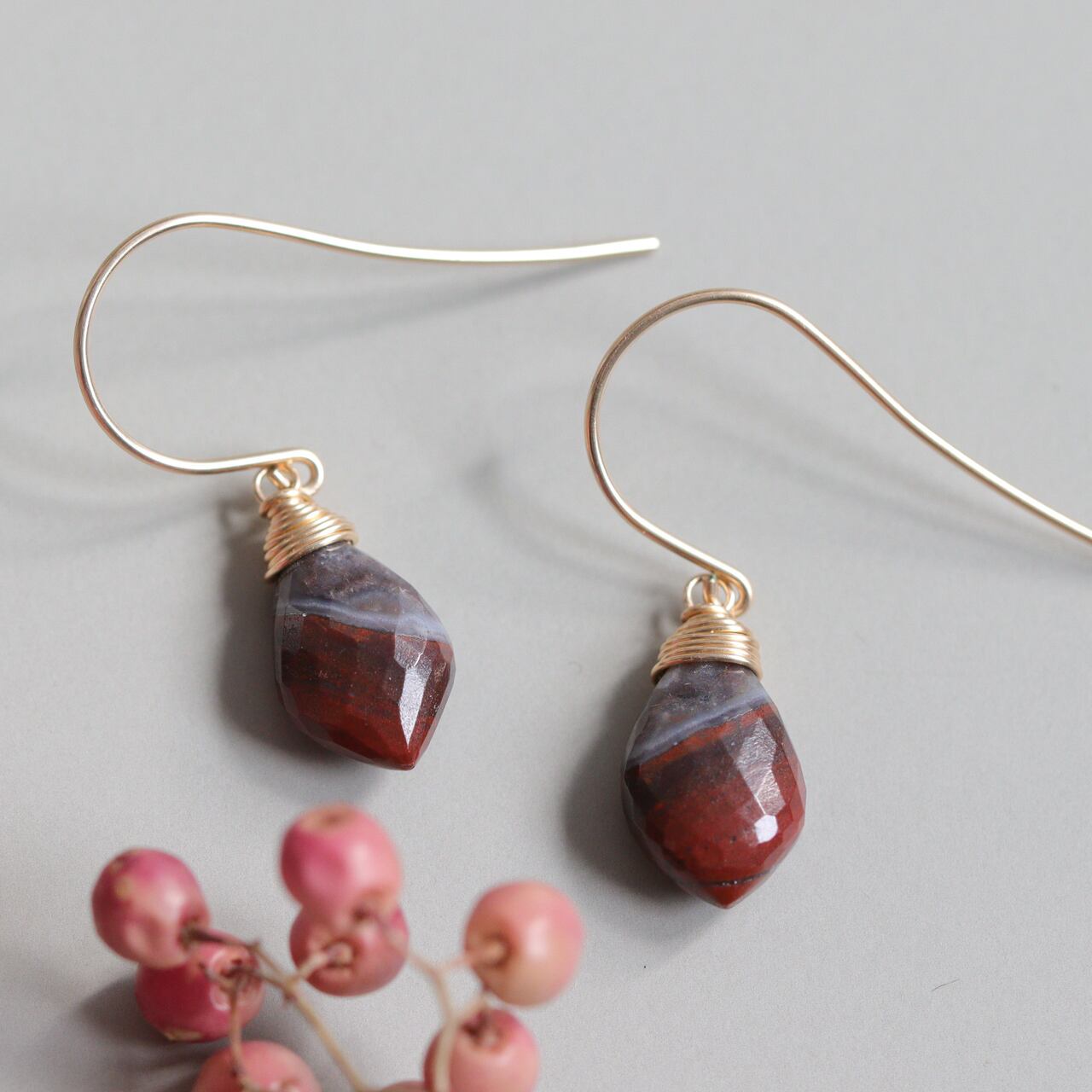 深みのある赤茶に入り組んだレース模様が浮かぶ、クレイジーレースジャスパーのピアス。