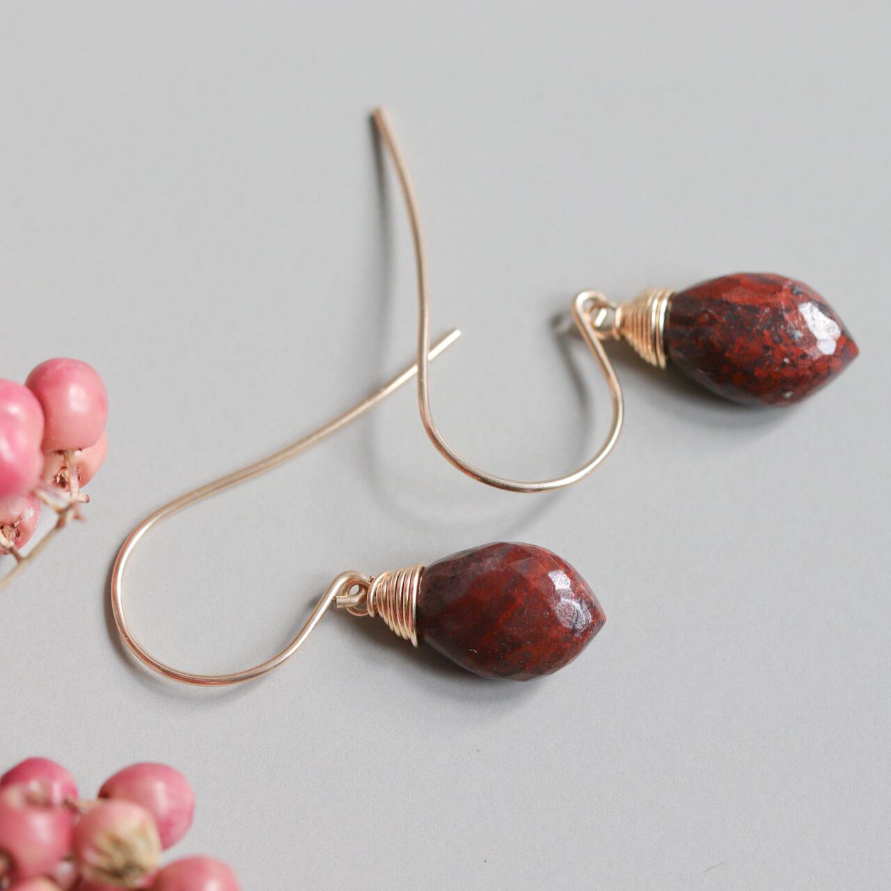 肌に溶け込むような深い赤茶の色合いが、耳元に穏やかなニュアンスを添えるピアスです。